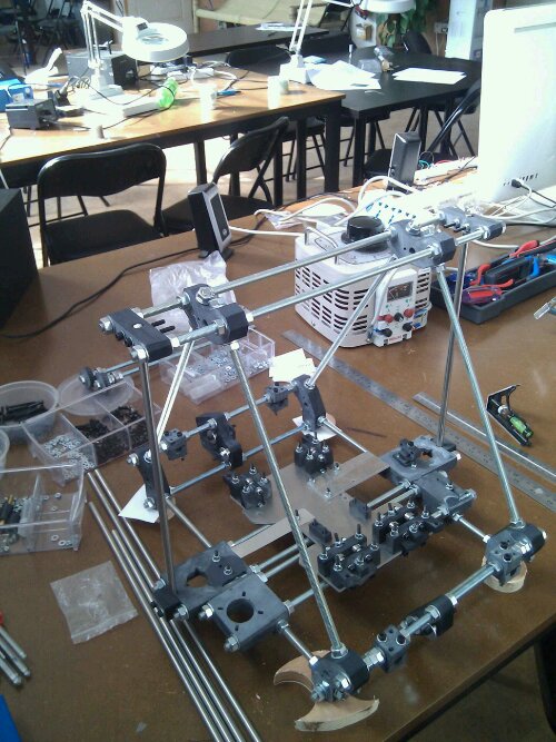 I was working on the 3d printer with Mike last Saturday and the parts for the frame, Z and Y axes are almost ready and calibrated.