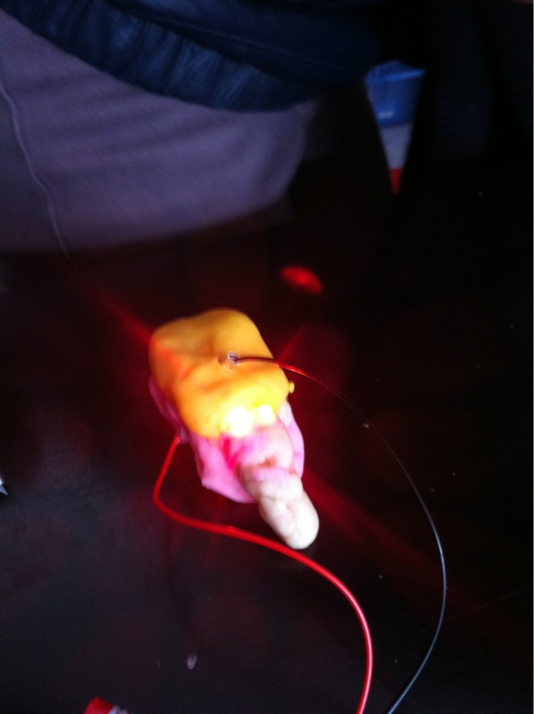 Tony Zhang from Neurosky He brought their brainwave reading and EKG measuring system.