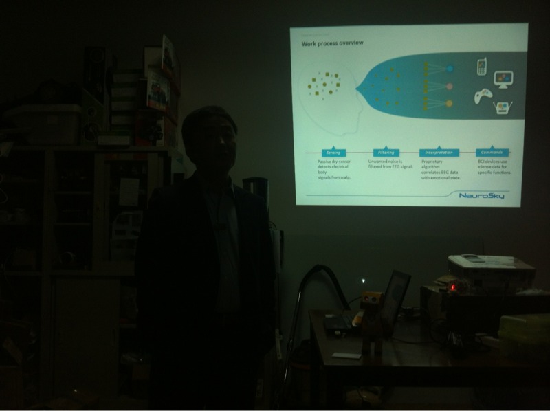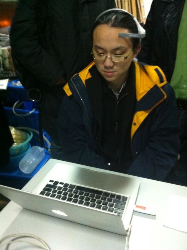 Tony Zhang from Neurosky He brought their brainwave reading and EKG measuring system.
