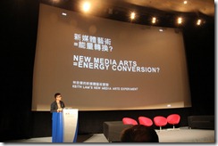 演讲的下一个环节是林欣杰带来的 “新媒体=能量转换” 的主题——“在艺术创作中,新概念的提出并非是唯一甚至不是最重要的决定因素”。当时的演讲语言为中文,而我正在查看接下来的其他演讲者,所以我错过了林欣杰的演讲的一些内容。