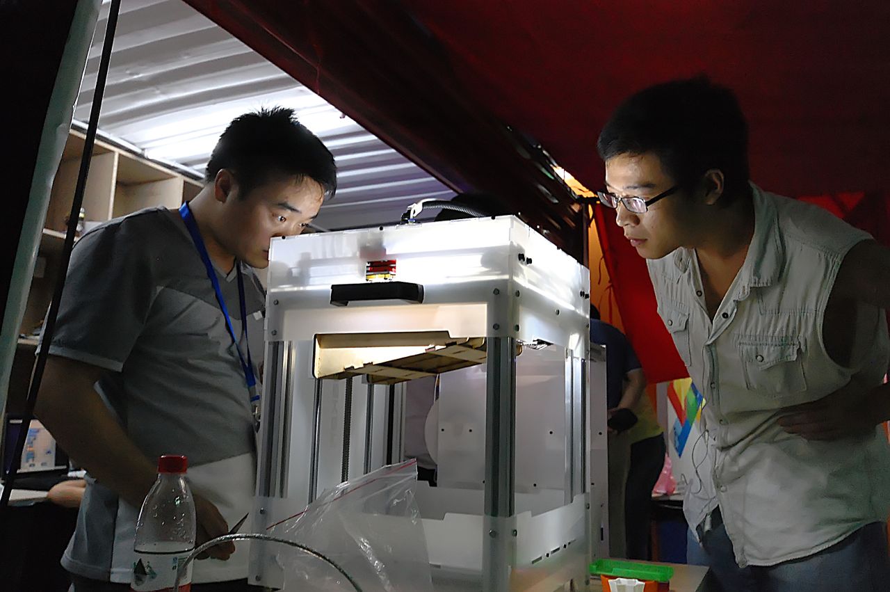 We built a Pop Up Hackerspace in a container as part of the Make+ for accelerating Makers’ project through Art. This is first to be host at the Creative Carnival in Shanghai. It’s done and opened over the weekend! It has been a success attracting a lot of visitors interested in 3D printing, robotics and Maker Culture! People come to see projects by the local makers, take workshop on Arduino and 3D printing and having fun talking to the makers. The pop up hackerspace will start its journey around China after the Shanghai Maker Carnival on Oct 19-20.