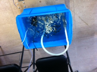 Also, 100 earth worms are added to help process the organic matter in the system. Hope they can survive with constant ebb and flow. 🙂 IMG 3260 Finally, over 300 Chinese green, tomato, cucumbers, eggplants, and sun flowers are transplanted and we should be ready to harvest in about 4 weeks. IMG 3253